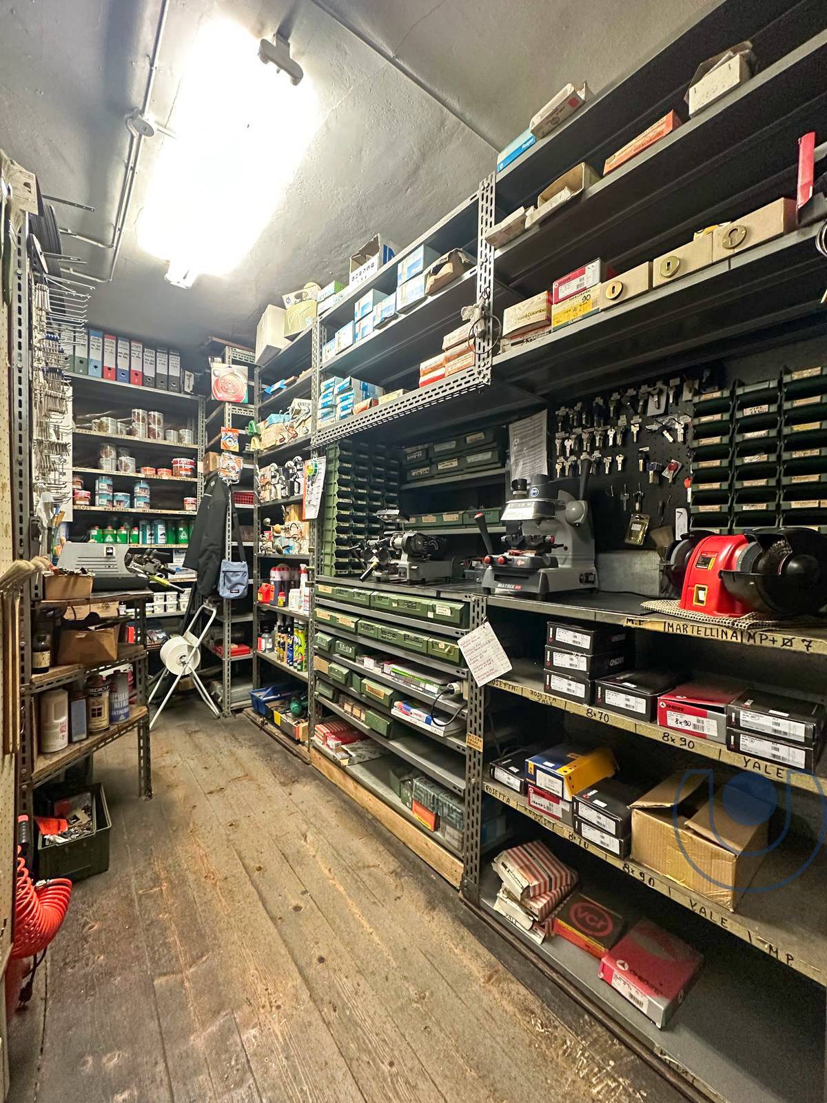 Il locale ha un'ottima distribuzione degli spazi interni con zona magazzino, scaffali, stoccaggio merce, ufficio e accoglienza clientela con bancone ricevimento.
