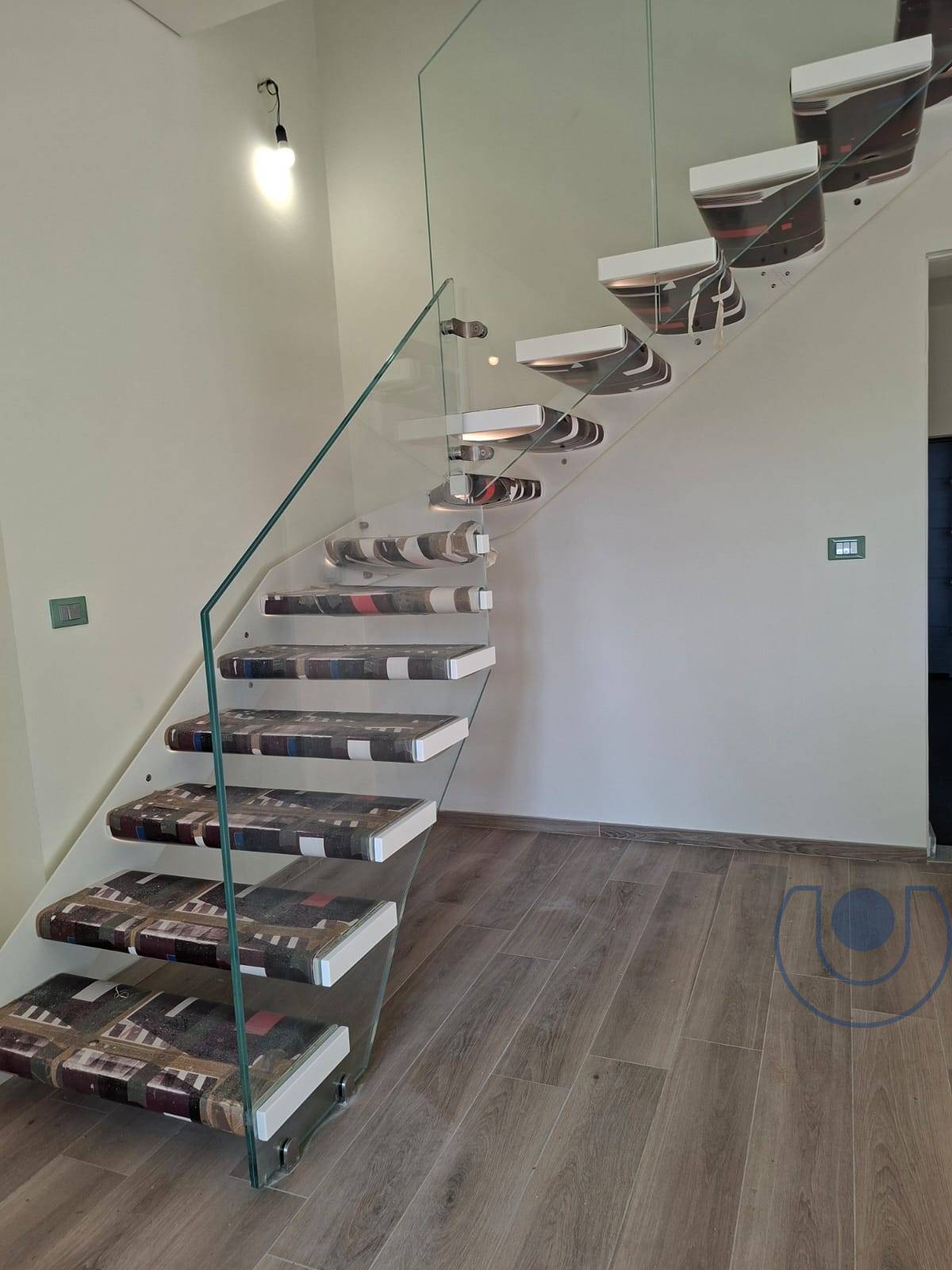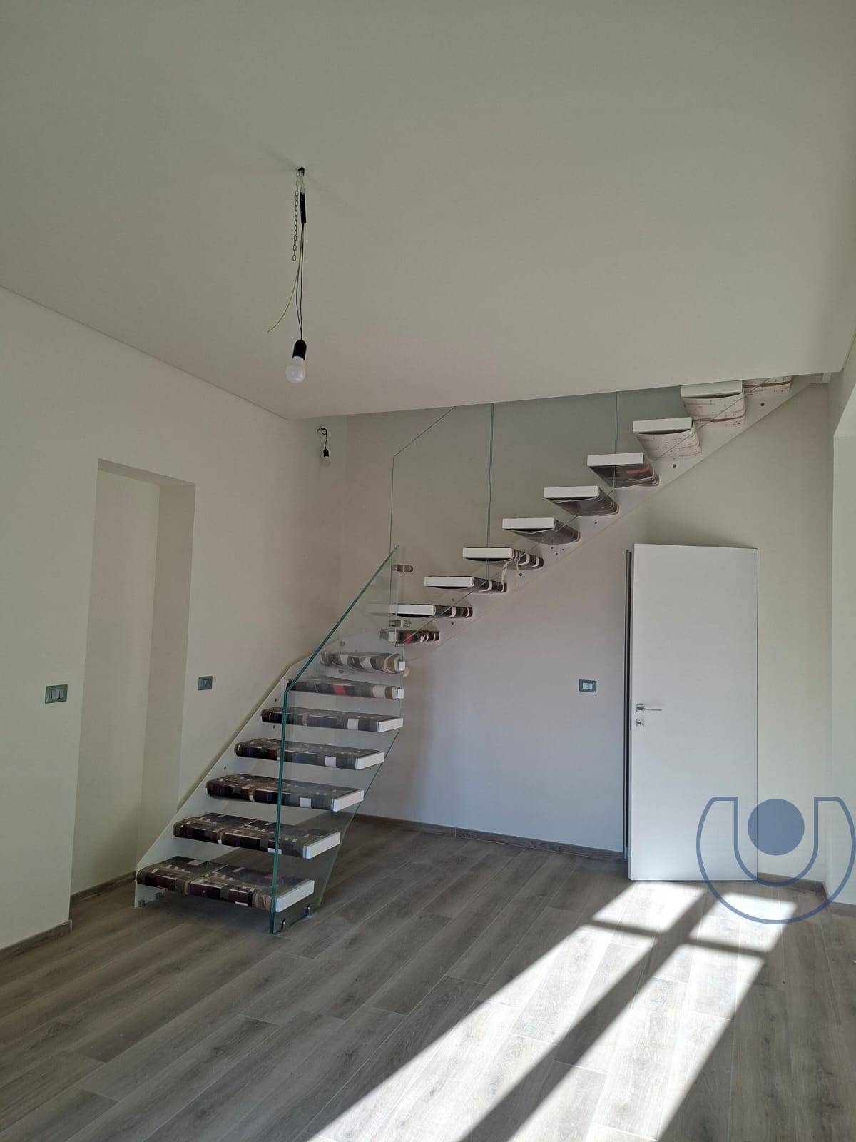 Dal salone si accede al piano superiore tramite scala illuminata a led molto caratteristica.