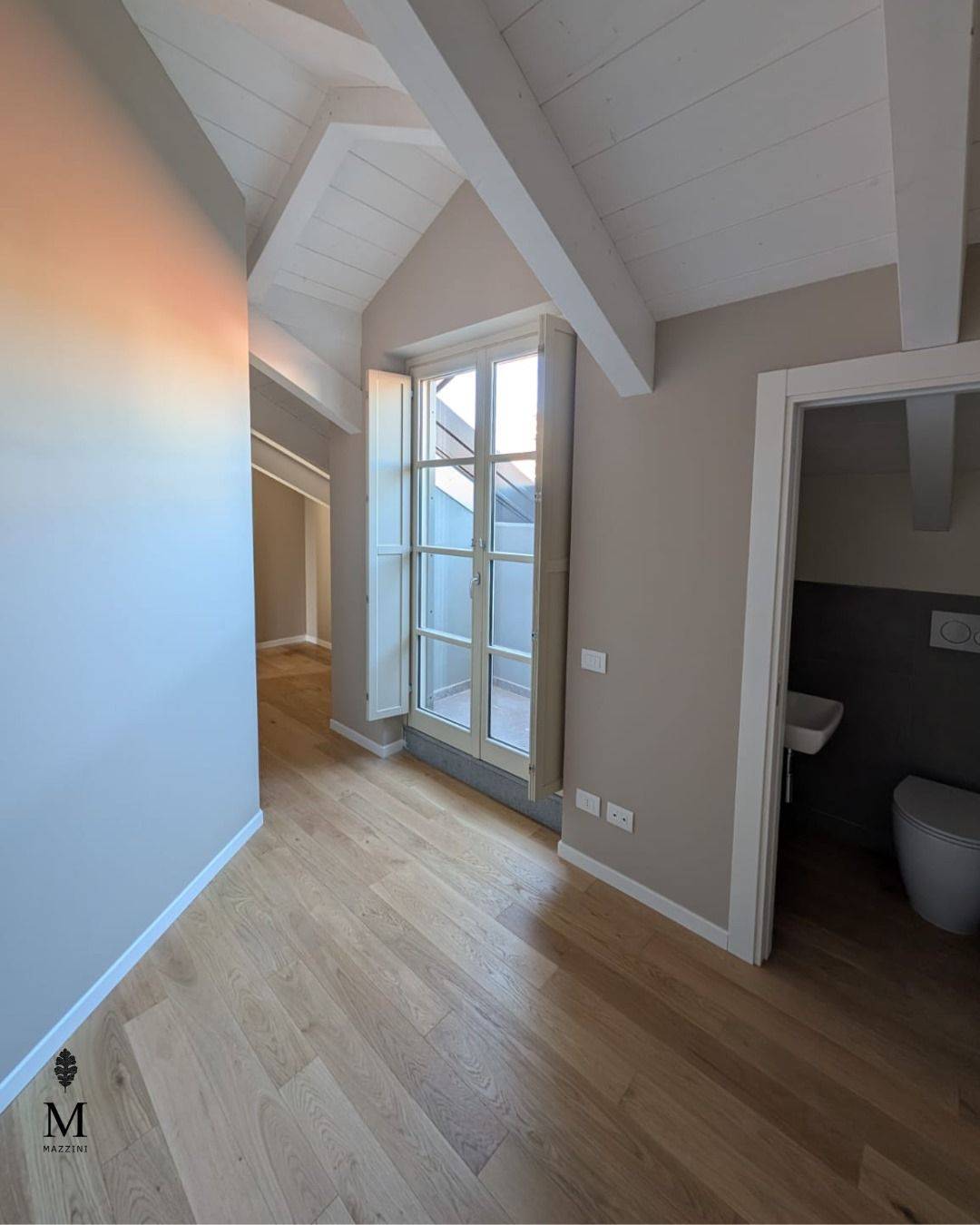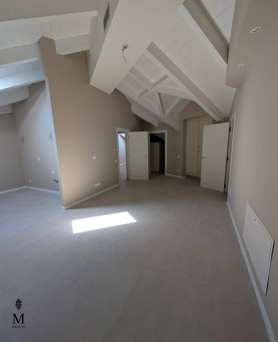 UNITA' F2 AL SECONDO PIANO CON TRAVI A VISTA composto da: ingresso con nicchia, spogliatoio e ripostiglio/lavanderia, soggiorno, cucina abitabile, disimpegno con 2 camere e servizio; l'immobile è dotato di due abbaini con balcone ampio soggiorno con cucina a vista, zona pranzo e zona relax, disimpegno con nicchie armadi, camera, cameretta, altro disimpegno con lavanderia e servizio.