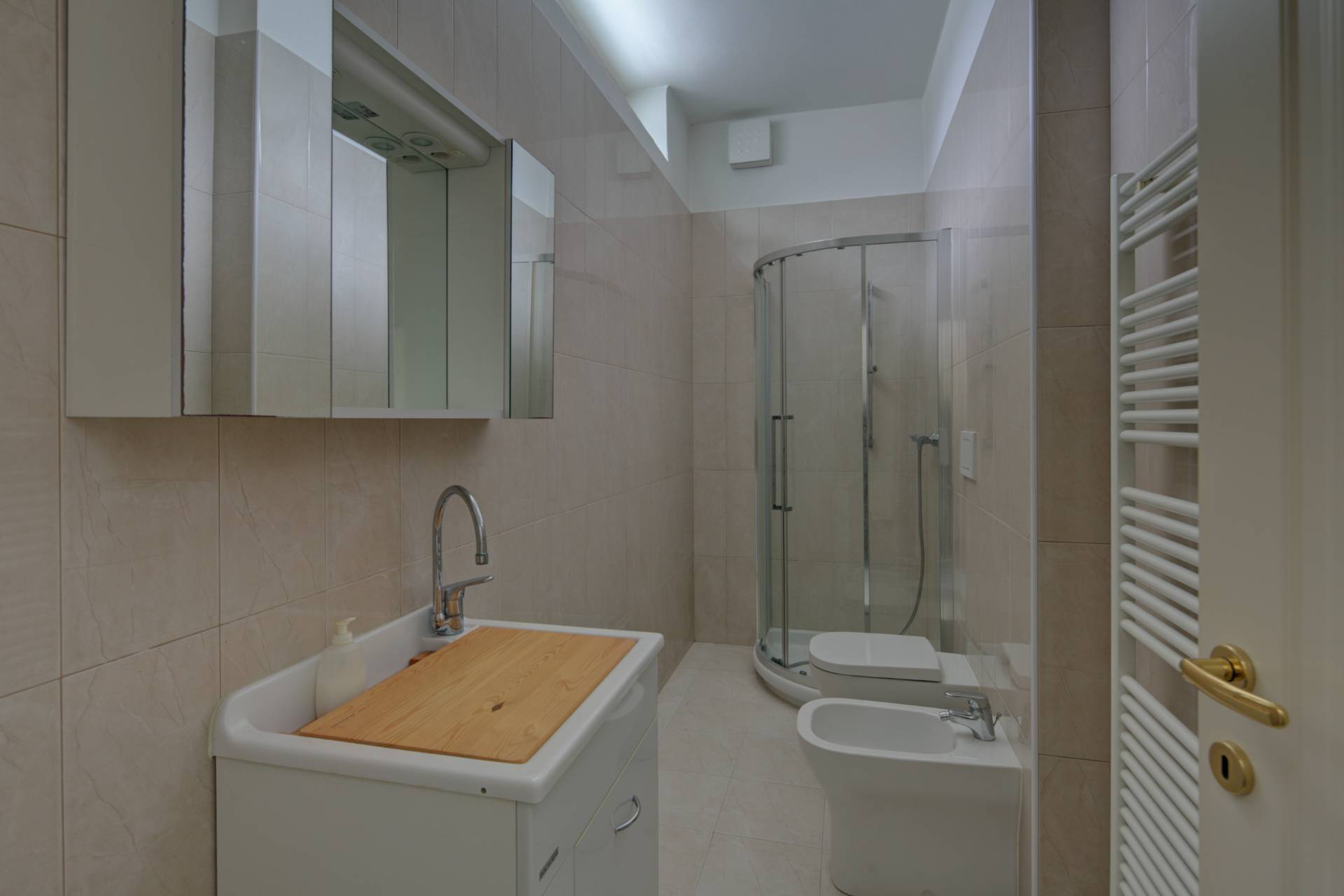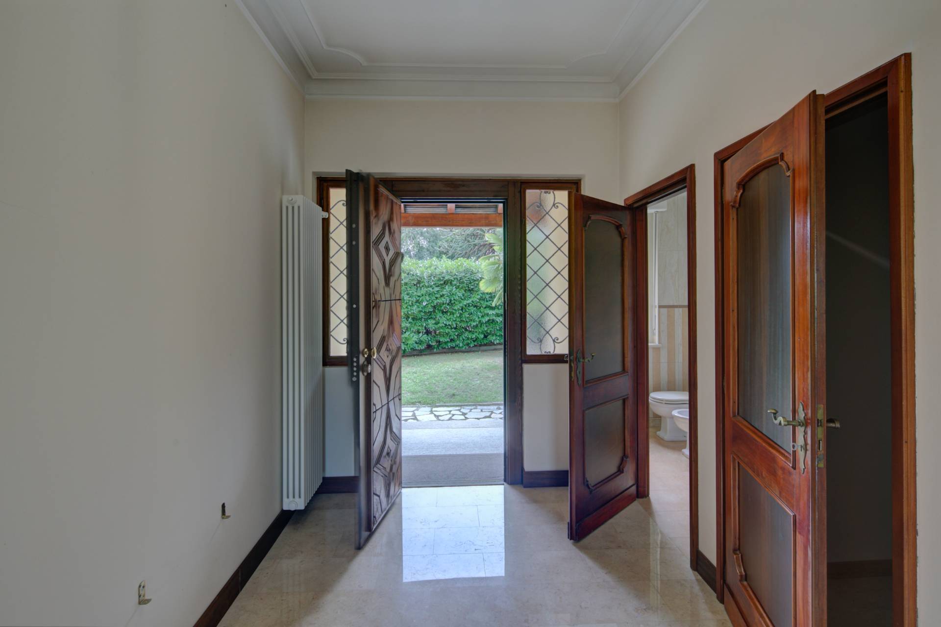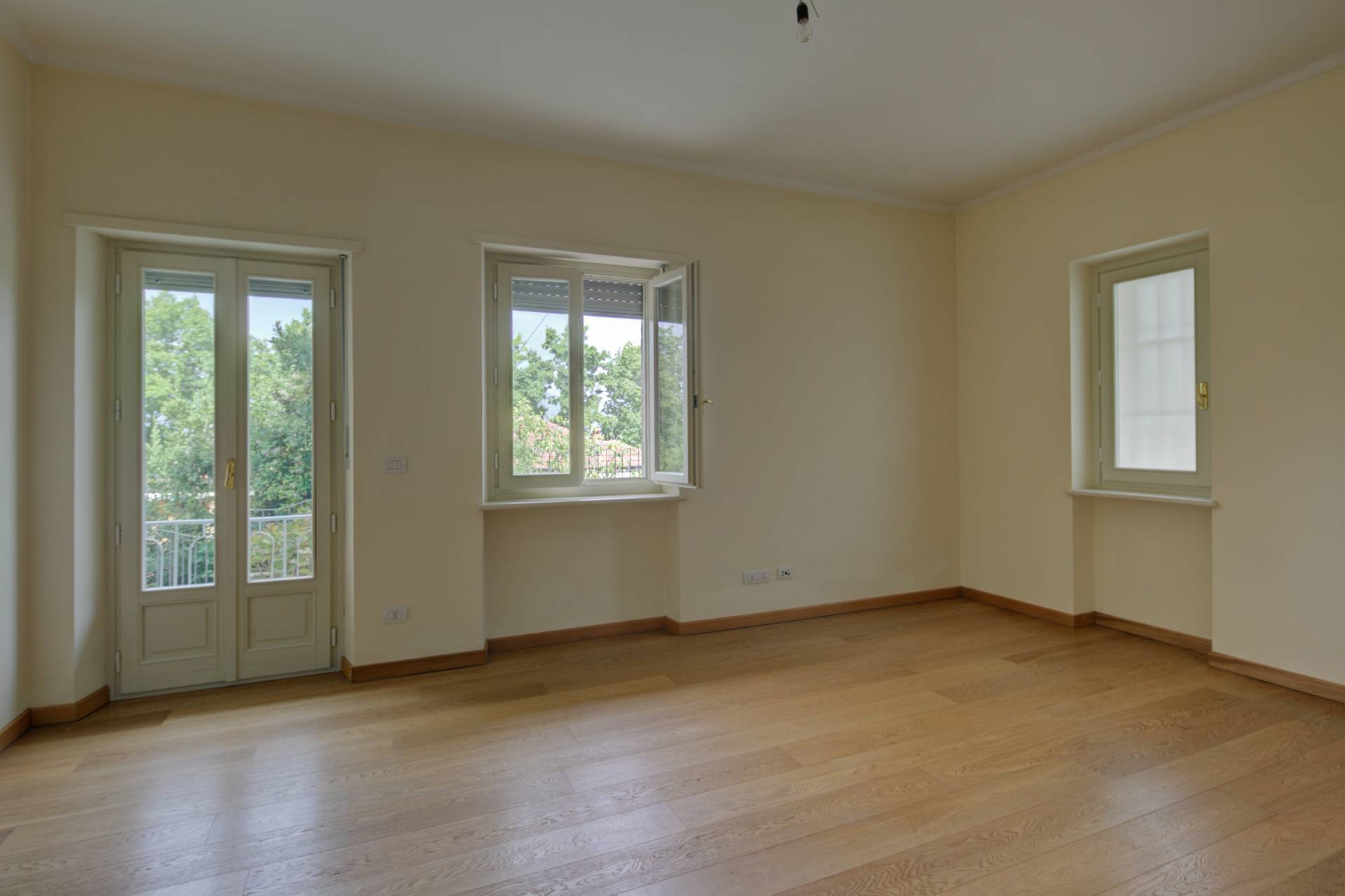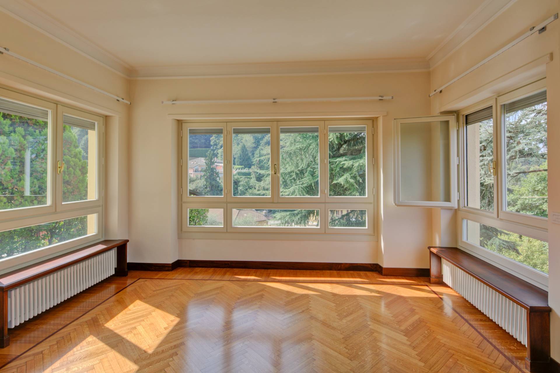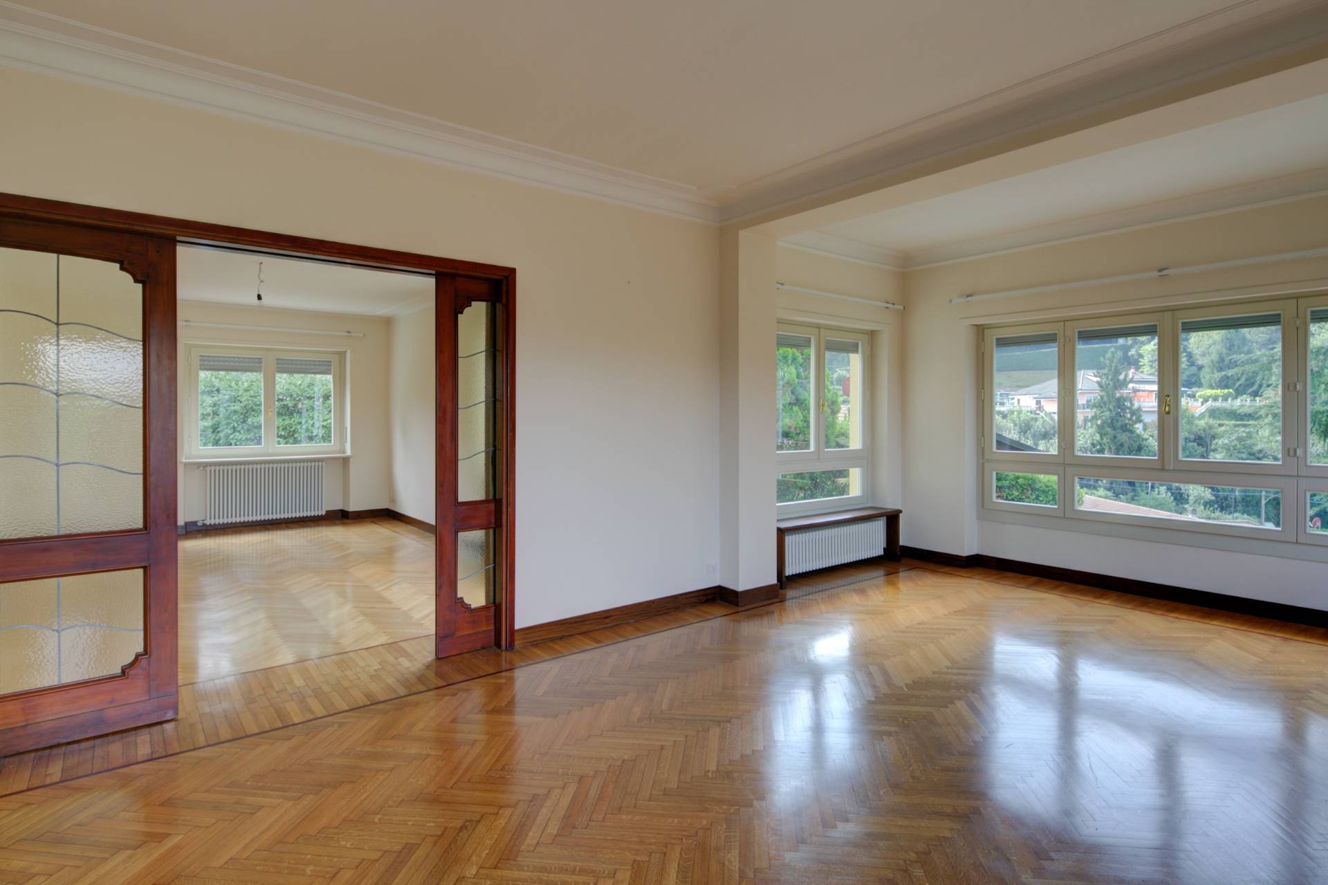 L'intervento di ristrutturazione ha interessato ogni aspetto dell'immobile: sostituzione completa dei serramenti in legno, nuovi impianti elettrici e di riscaldamento, rifacimento totale dei bagni e finiture di alto livello in tutti gli ambienti.