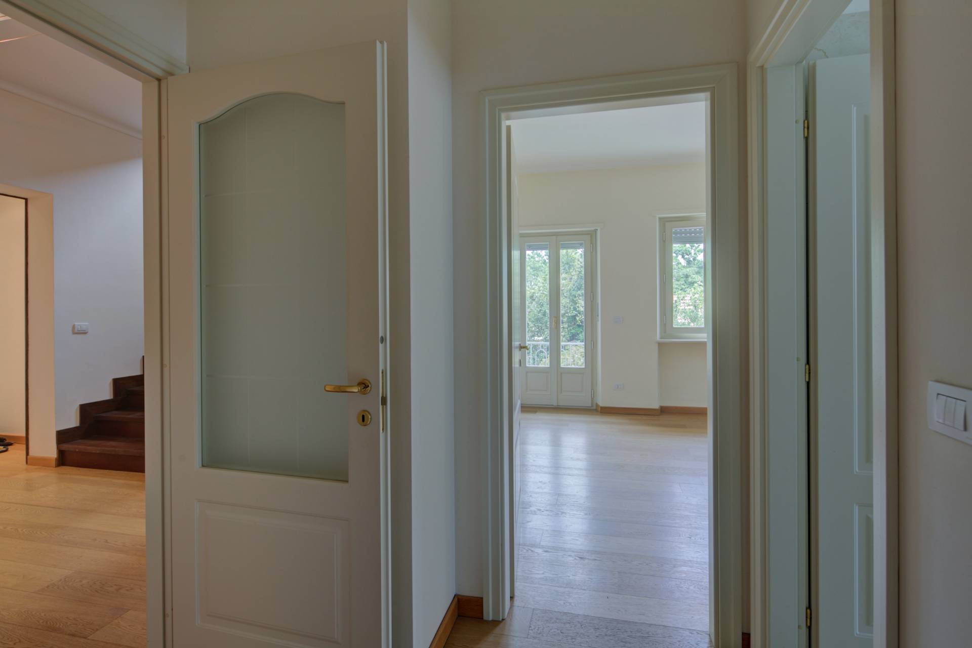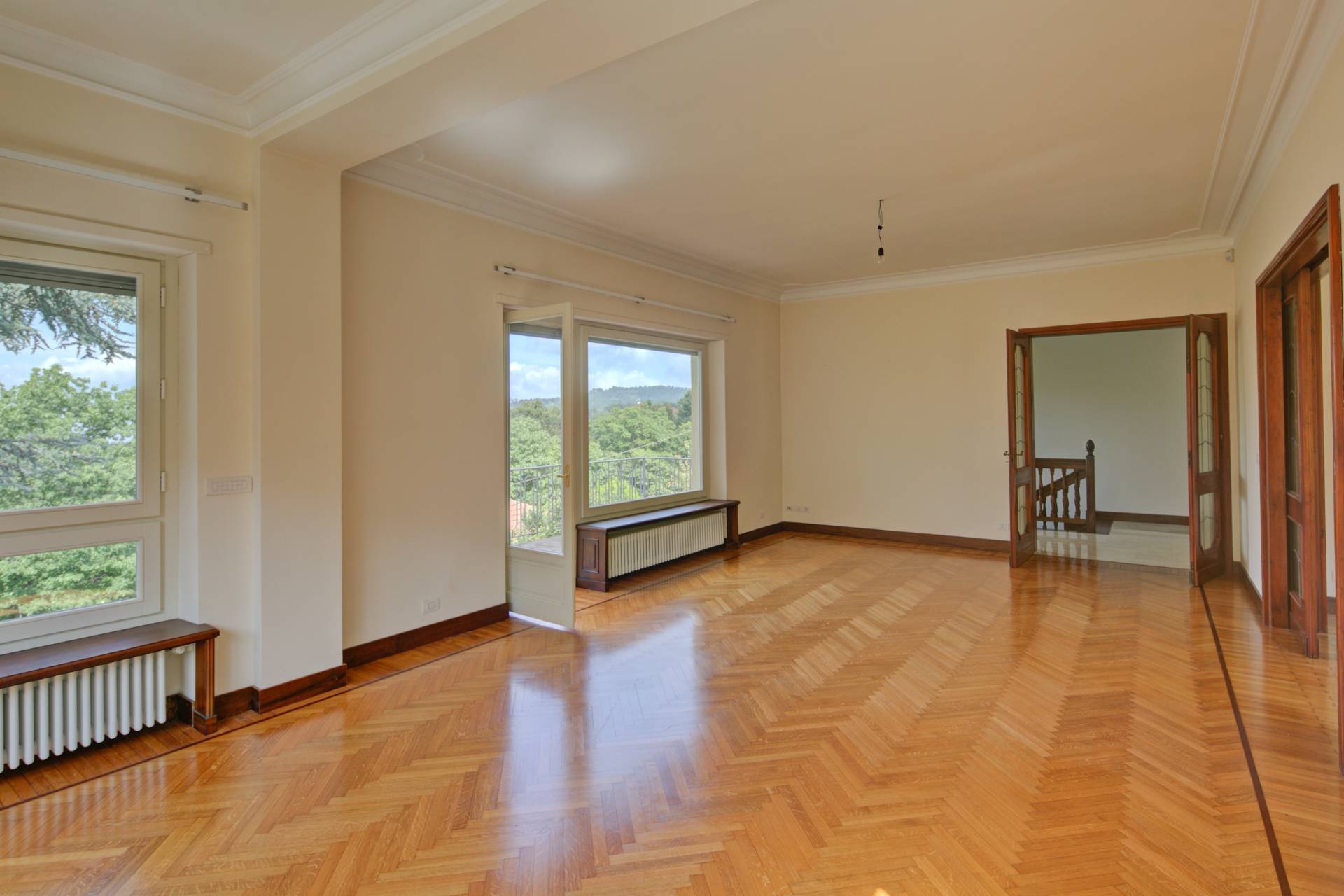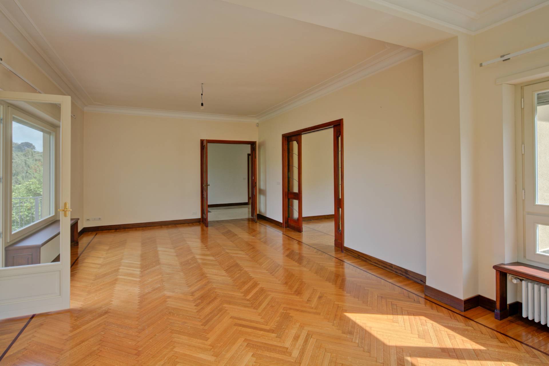 Completano il piano due ampie camere da letto, di cui una con bagno en suite, altri due bagni finemente ristrutturati, un ripostiglio e un vano predisposto per l'installazione di un ascensore interno.