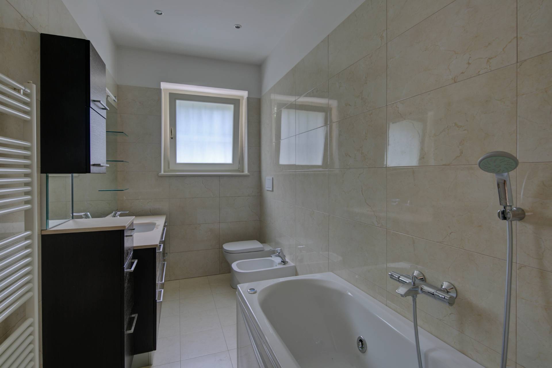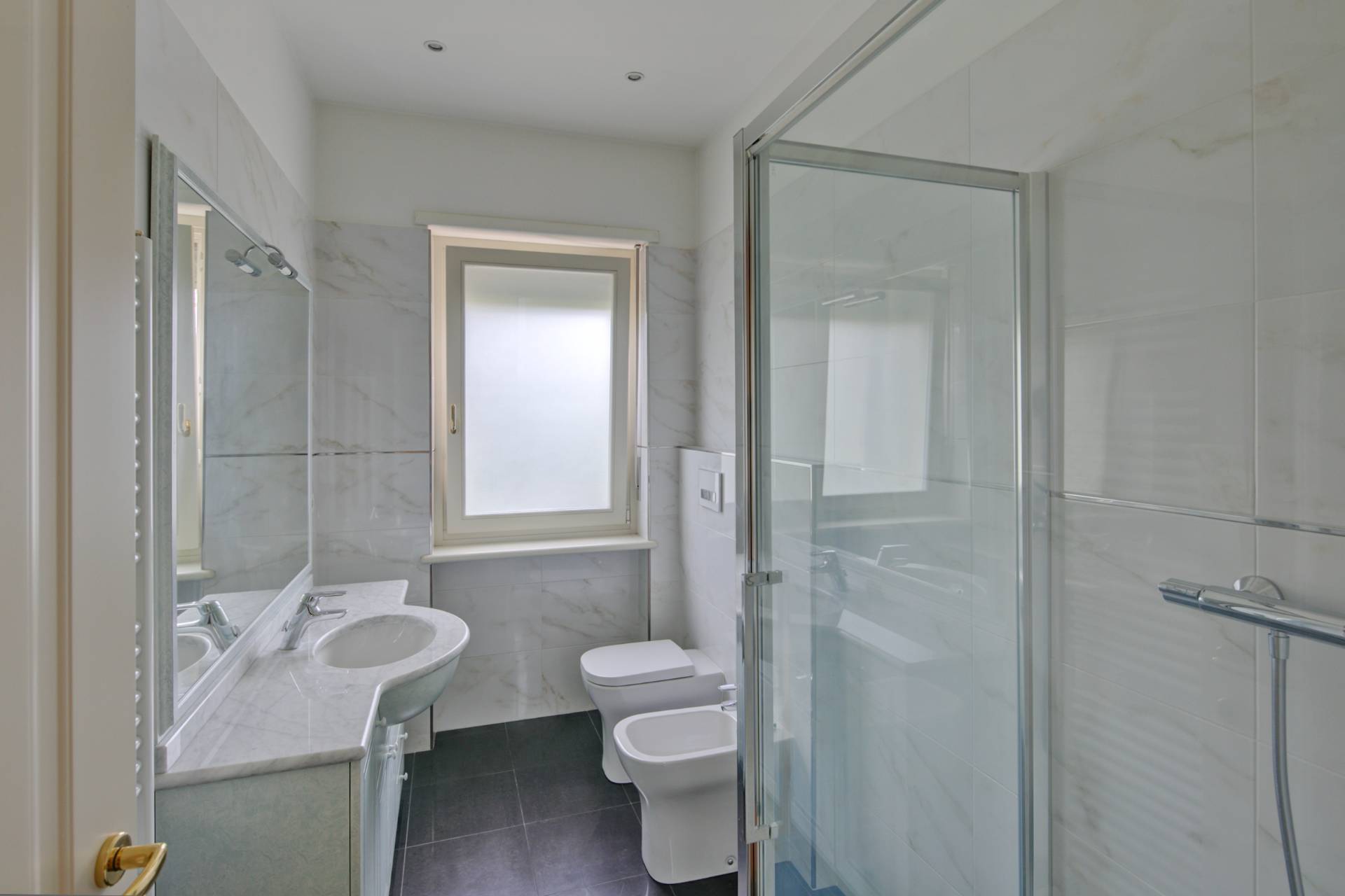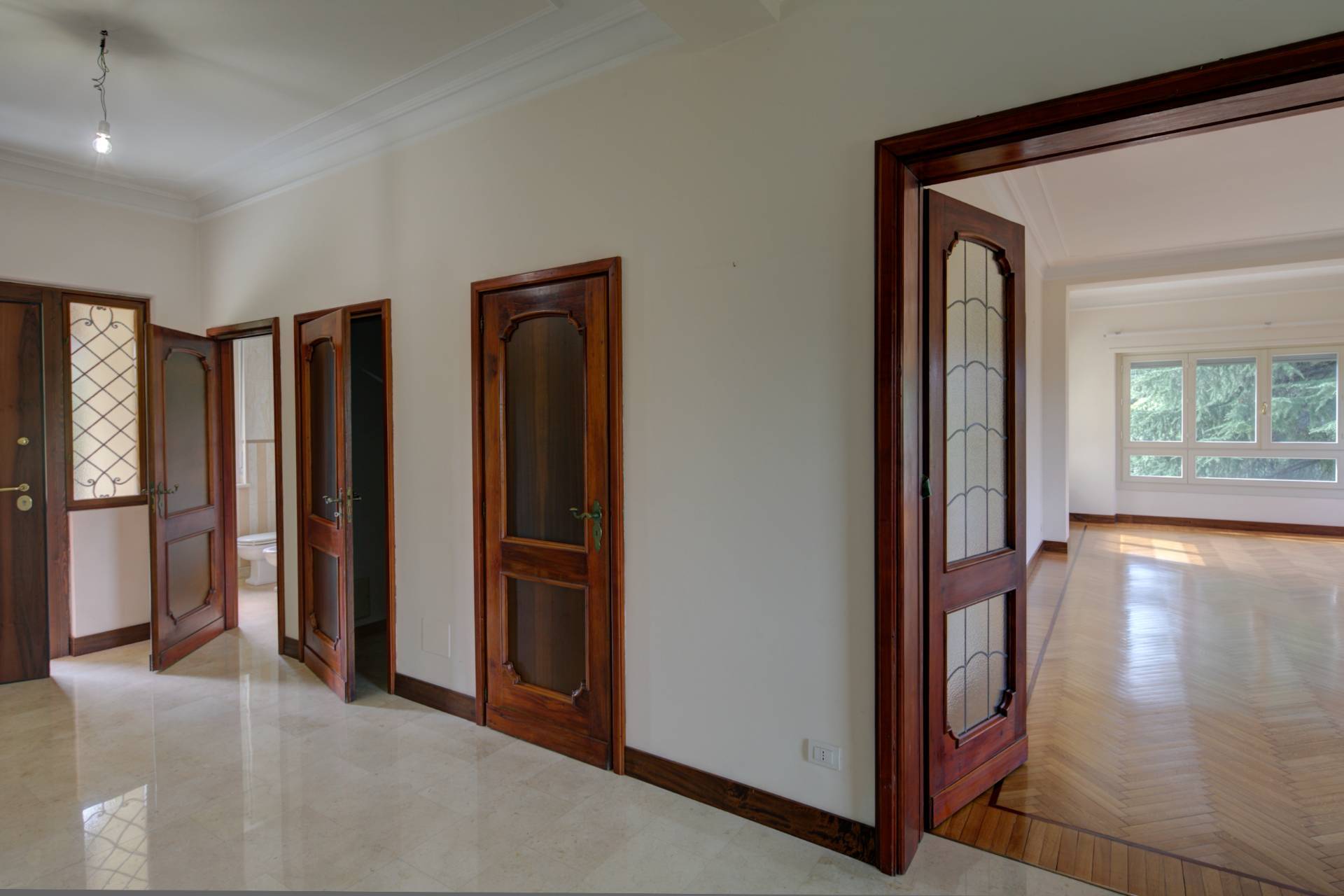 Completano il piano due ampie camere da letto, di cui una con bagno en suite, altri due bagni finemente ristrutturati, un ripostiglio e un vano predisposto per l'installazione di un ascensore interno.
