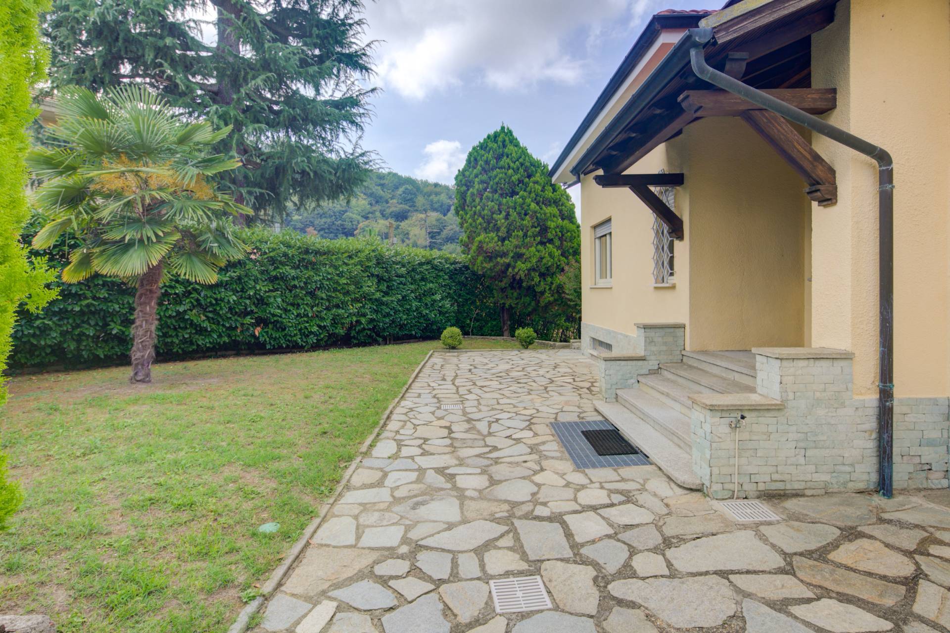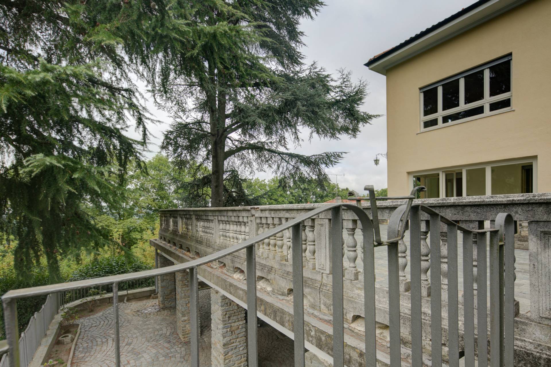 Il giardino privato, ben piantumato e parzialmente in piano, regala scorci suggestivi e un'atmosfera di assoluta riservatezza; attraverso un comodo cancelletto è collegato direttamente all'inizio della rinomata Panoramica di Pino Torinese.