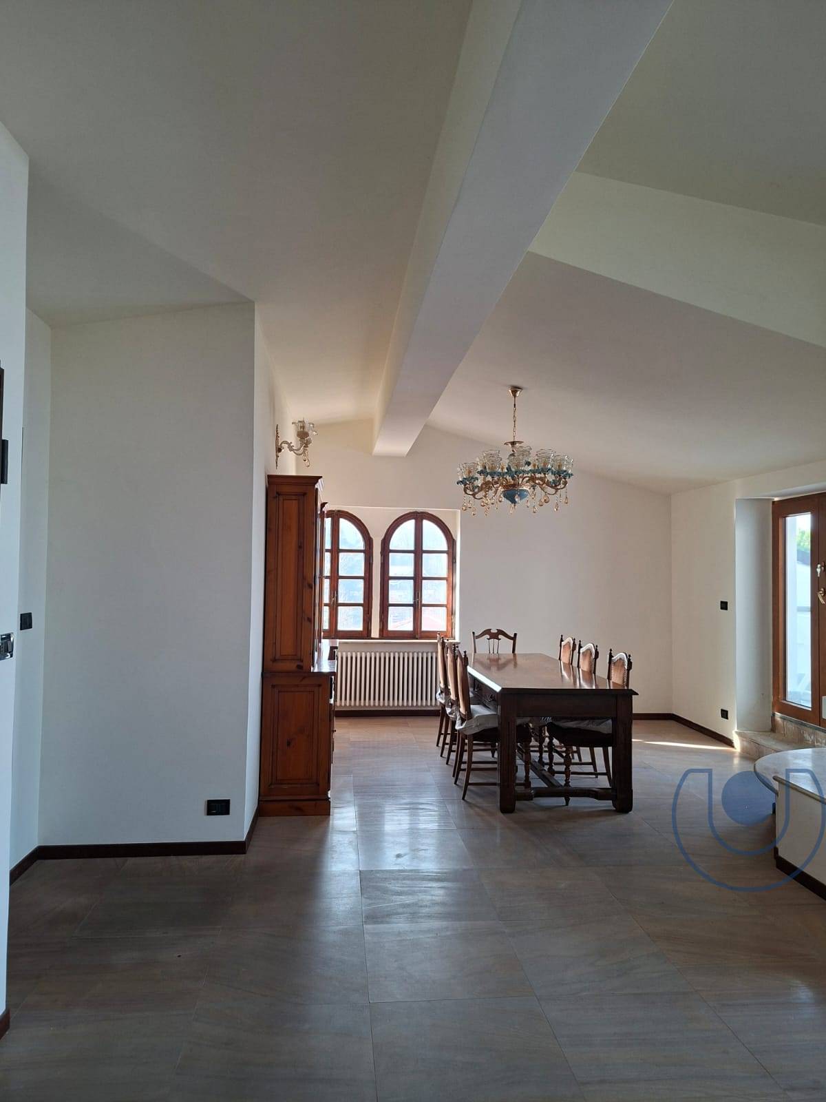 Salendo al piano superiore, veniamo accolti da un salone di alta rappresentanza con una sala da pranzo dedicata, ideale per ospitare cene conviviali in un ambiente arioso e luminoso.