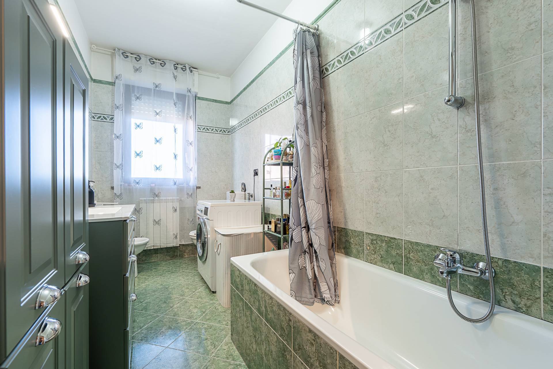 La zona circostante è tranquilla e silenziosa, ma allo stesso tempo ben servita da negozi, supermercati, scuole e mezzi pubblici.
